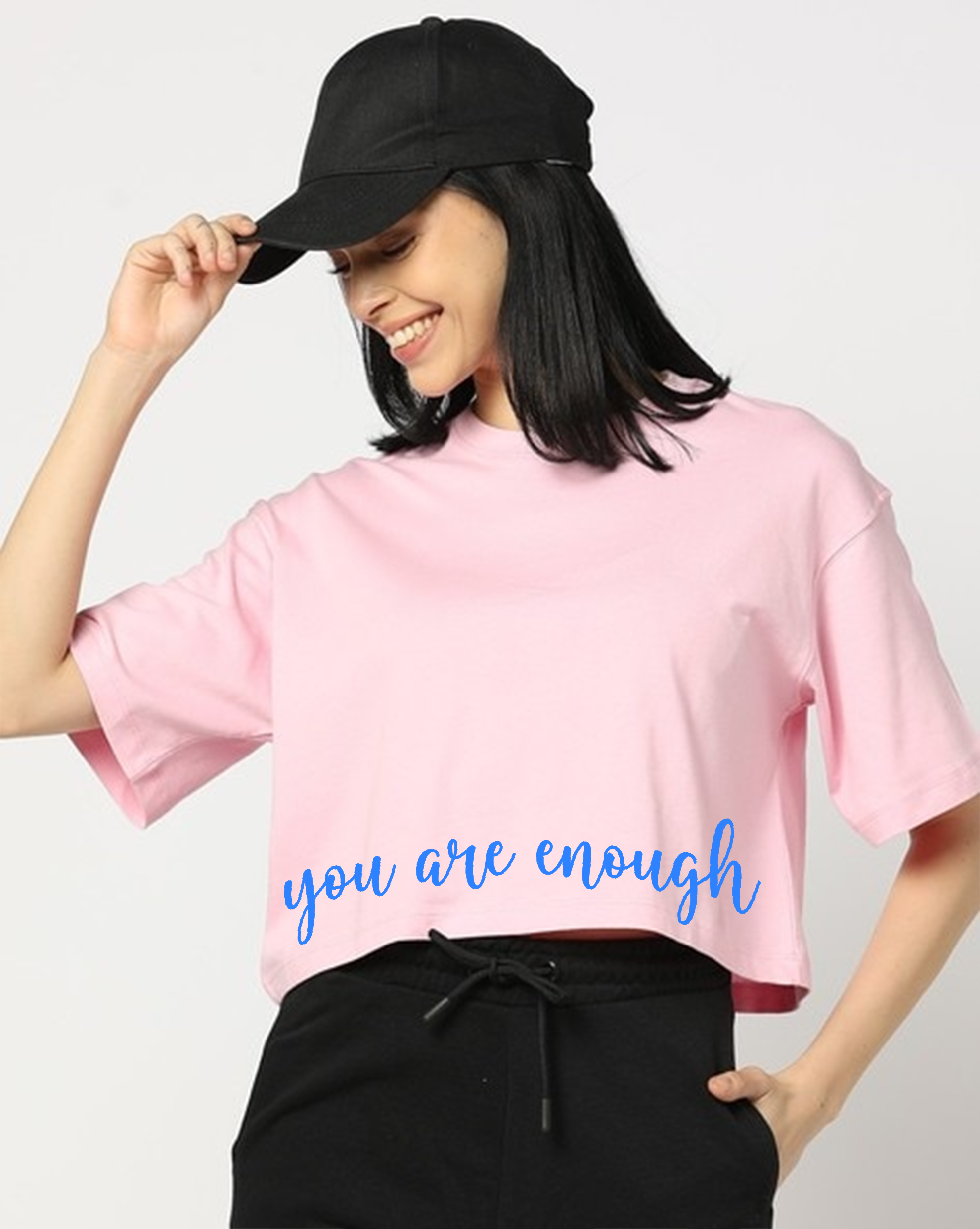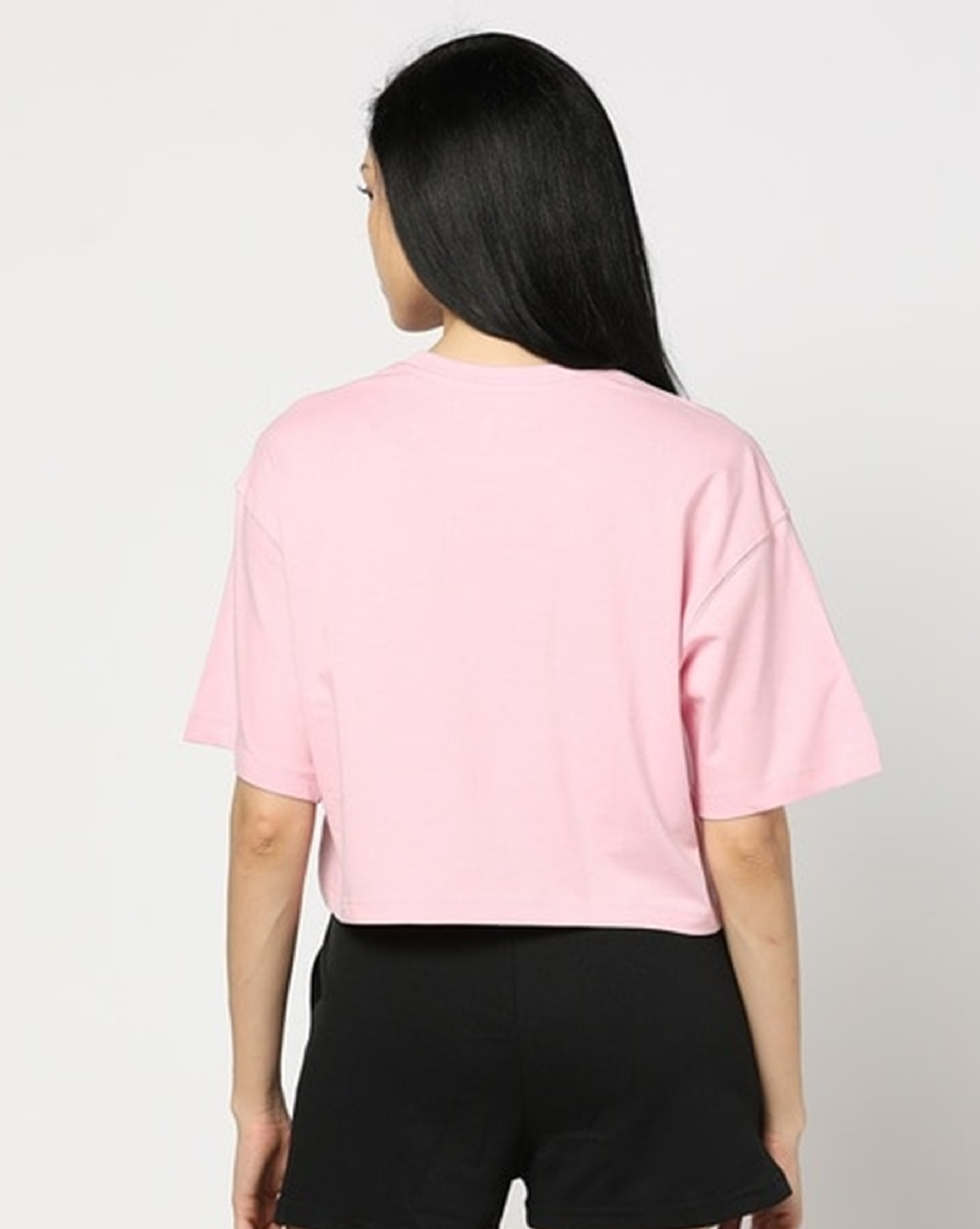 Women Crop Drop Shoulder T-Shirt – Baby Pink
